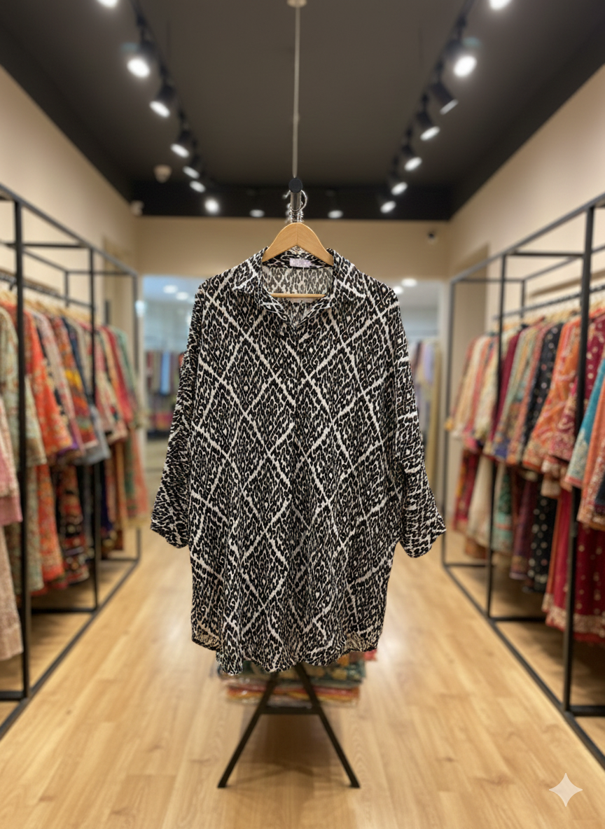 Style Tip: Pair this statement kurta with silver stilettos and statement earrings to complement the cool tones of the sequins and lace.